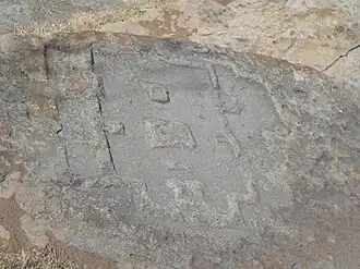 There are apparently two main zones with many petroglyphs, one to the east of the ball game, near the Temazcal and another more important section to the north.[1]