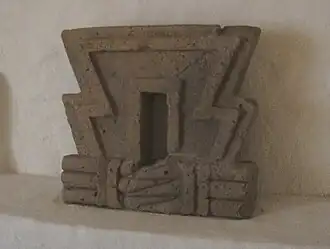 In addition to its political function, it was probably dedicated to the earth, by the inverted T shape related to the underworld. Its walls contain carved stones with a cut spiral.[1]