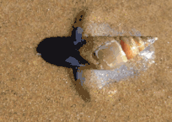 When the tide starts to rise, this snail emerges from the sand, spreads its large "foot" like a sail, and surfs up the beach in response to the smell of carrion.[2][3] The large foot is also used to burrow into the sand when the tide recedes.[3] Sticks its proboscis into the prey to suck up soft tissues.[3] Often gathers in large numbers to feed on dead and stranded jellyfish and bluebottles.[2][3]