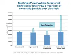 Considering that actual PEV sales were lower than initially expected, as of early 2013, several industry observers have concluded that this goal was unattainable.[23][24][25][26] Obama's goal was achieved only in September 2018.[27][28]