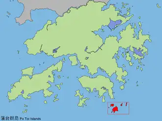 The Po Toi Islands are a small group of islands with a population of around 200, south-east of Hong Kong Island, off Stanley, in Hong Kong. The main island of the group is Po Toi Island. Administratively, they are part of Islands District.[1]