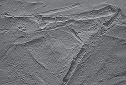 Lull found that fossil footprints named Grallator cursorius agreed with the foot and stride of Podokesaurus. These were abundant at a quarry in South Hadley (where they were found alongside large Otozoum moodii tracks), which he thought supported this identity.[6] In 1926, Heilmann suggested that the foot of Procompsognathus was a better match for the G. cursorius tracks, due to the proportions of its toe bones.[48] The paleontologist Wilhelm Bock stated in 1952 that while very similar Grallator tracks had been attributed to various small dinosaurs (such as Podokesaurus), he considered such correlations too specific, and that the best that could be said was such tracks represented small coelurosaurians.[49] The writer Donald F. Glut suggested in 1997 that a slab with tracks from the Brunswick Formation of New York previously attributed to Coelophysis may instead have been produced by Podokesaurus, based on its Jurassic age.[50] This formation is now known as the Passaic Formation, and instead thought to be Late Triassic in age.[51]