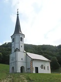 The local church is dedicated to Saint Paul and belongs to the Parish of Gabrovka. It was built in the late 14th century as the chapel of the now ruined Gallenstein Castle. The castle was destroyed during Ottoman raids in the 16th century. The interior of the church was painted three times: around 1420, in the late 15th century, and again in 1539.[4]