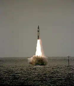 During the 1950s, the UK's nuclear deterrent was based around the V-bombers of the Royal Air Force (RAF), but developments in radar and surface-to-air missiles made it clear that bombers were becoming increasingly vulnerable, and would be unlikely to penetrate Soviet airspace in the 1970s.[7] Free-fall nuclear weapons were losing credibility as a deterrent. To address this problem, the United Kingdom embarked on the development of a Medium Range Ballistic Missile called Blue Streak.[8] By 1959—before it had even entered service—serious concerns had been raised about its own vulnerability, as it was liquid-fuelled and deployed above ground, and therefore extremely vulnerable to a pre-emptive nuclear strike.[9]