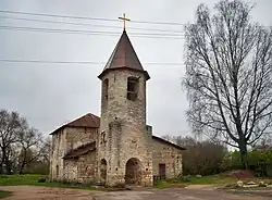The fortress consists of a well-preserved encircling wall; two towers, one of which is half-ruined; a diminutive church from 1412, and a museum of local history. Inside the fortress there are a great many trees and plants. The church of the Virgin's Nativity, a remarkable monumental erection of the 14th century, was disfigured during the Soviet period (picture). Another church of note in Porkhov is the Savior church (1670).