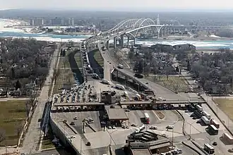 ![]() U.S. Border Inspection Station at the foot of the Blue Water Bridge | |