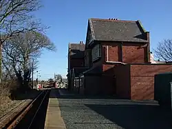 A timber goods shed was provided in 1880 being of similar style to those elsewhere on the route of which no known photographs survive but it is believed to have been similar to that provided at Crosby Station on the Peel Line which was in a "Swiss" style and capable of being relocated. This was replaced by a stone structure as below, which remains extant.
