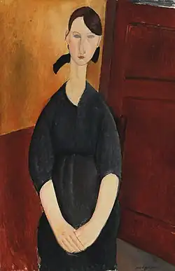 Portrait of Paulette Jourdain is a 1919 oil painting by Italian painter Amedeo Modigliani.[1] It was in the personal collection of A. Alfred Taubman.[1] The painting was sold at auction by Sotheby's in November 2015 for $42.8 million.[2] The painting depicts Pauline Jourdain, who moved from Concarneau in Brittany to Paris in 1919 as a teenager.[3] One of Modigliani's largest works, it shows Cubist influences and references the Mona Lisa.[4] The painting was in the private collection of Liu Yiqian and was sold auction in 2023 for an unexpected low price of $34.9 million dollars.[5]