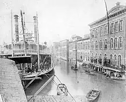 Portsmouth quickly developed an industrial base due to its location at the confluence of the Ohio and Scioto rivers. Early industrial growth included having meat packing and shipping facilities for Thomas Worthington's Chillicothe farm, located north of Portsmouth on the Scioto River. Its growth was stimulated by the completion of the Ohio and Erie Canal in the 1820s and 1830s,[15] which provided access to the Great Lakes, opening up northern markets.