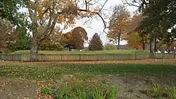 The northernmost section was made up of a number of circular enclosures, two large horseshoe-shaped enclosures, and three sets of parallel-walled roads leading away in different directions. One set of walled roads extends across the Ohio River into South Portsmouth, Kentucky to the southwest to Portsmouth Earthworks, Group A. Another set of walled roads lead to the southeast where it also crossed the Ohio River and lead to Portsmouth Earthworks, Group C.[3] The third set of walled roads lead to the northwest for an undetermined distance, and may point to Tremper Mound and Works, some 5 miles away. The City of Portsmouth maintains a public park which includes one of the remaining horseshoe-shaped enclosures, known as Mound Park, it is the only publicly accessible part of the complex.[2] Under the name Horseshoe Mound it was listed on the National Register of Historic Places in 1974.[2]
