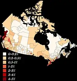 - ^ "Ethnic Origin, Single and Multiple Ethnic Origin Responses and Sex for the Population of Canada, Provinces, Territories, Census Metropolitan Areas and Census Agglomerations, 2006 Census – 20% Sample Data". Retrieved 10 November 2010.