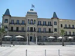 The hotel opened in 1914. It was developed by Sotirios Anargiros, a visionary Greek benefactor who was responsible for much of the development of the island.[3]
