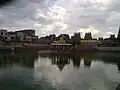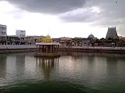 After Pralaya, of the two holy tanks that came into existence in Kumbakonam one was Potramarai tank. As Thirumagal came from 'golden lotus', Potramarai in Tamil, this tank is called as Potramarai tank.[1] In Kumbakonam, this is considered very sacred, the first being the Mahamaham tank. This tank belonged to Sarangapani temple. The tank has walls on all its four sides.[2] Once writers used to mingle on the banks of the tank.[3]