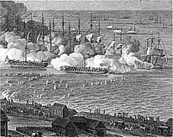 The area traces its history back to 1713 when a marine battery was established at the site by wrecking the floating dock Prøvestenen. The work was led by Ole Judichær. Another marine fortress, Trekroner Fort, was also built at this point. The battery fell into neglect over the following years. In 1723-24 three more ships were wrecked at the site to expand it but it was once again severely damaged by storms and ice and in 1736. In 1736, it was proposed to decommission it but the plans were never executed and it existed with a single guard until 1767–1767.[1] It played a role in the Battle of Copenhagen in 1801.