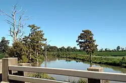 Prior to settlement, Prairie County was large, flat grassland distinct from the swamps and bayous in the nearby Delta. Although cotton and other row crops grew well in the Prairie's silty loam soil, rice production changed the cultivation patterns in the county at the turn of the nineteenth century.[5] Although some prairie and riparian areas has been preserved in conservation areas, a large portion (44 percent) of the county remains in cultivation.[Note 1] Another large land use in Prairie County is the Cache River NWR and Wattensaw Wildlife Management Area (WMA), owned by the United States Fish and Wildlife Service and Arkansas Game and Fish Commission, respectively.