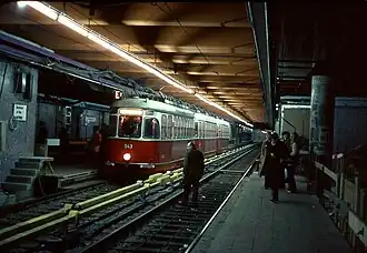 The modern premetro concept Stadtbahn began in 1960s Germany, as rising traffic congestion due to auto ownership led to the construction of new transit systems. Rather than building costly metro lines immediately, some cities built only the downtown tunnels. They could be used by existing tram lines in the short term, with the intention of full metro conversion later - hence "pre-metro".[17] The idea spread to other European countries in the 1970s, especially Belgium, where such systems were explicitly named premetros.[17] Also one segment of Vienna's U2 metro line (Rathaus-Museumsquartier) is an in 1980 converted underground tramway line, which was constructed in 1966.