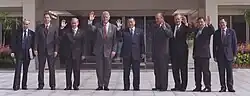 Chrétien with South-African President Thabo Mbeki (left), Vladimir Putin and the Malaysian Prime Minister Mahathir Mohamad in June 2003.