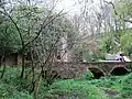 About 1786, the 3-storey cotton mill—possibly the only one in south Wales, or at least the largest, with 1,512 spindles—began an industrial complex on the Cleddau River. It was converted to a paper mill in 1816, establishing the paper-making industry in Haverfordwest, but by the end of the century was disused. In ruins by the 20th century, it was partially demolished in 1986. The bridge over the mill race—now no longer running— was constructed in 1812, is a Grade II listed structure and is still in use.[13]: 92 [14][15][16]