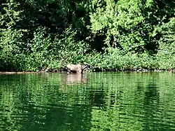 Priest Lake has a pristine variety of wildlife both in and around the lake. The standard bear, deer, and moose population that can be seen throughout northern Washington and Idaho is present about the lake, as well as a small population of grizzly bears. Priest Lake also has a large population of fish, including cutthroat trout, Kokanee, lake trout, and Dolly Varden trout. The largest lake trout caught in the United States was caught at Priest Lake, by a Spokane Washington man, Lyle McClure, in 1971 and weighed 57 lbs. 8 oz.[5] The average lake trout ranges weighs in between 4 and 10 pounds.