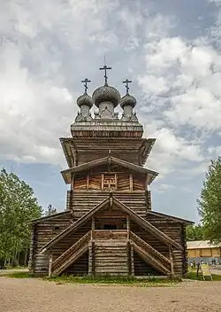 There are two state museums in the district. The Malye Korely Open Air Museum is located approximately 30 kilometers (19 mi) south of Arkhangelsk. It was created to protect the oeuvres of the Russian wooden architecture, and contains many buildings from various parts of Arkhangelsk Oblast.[14] There is also the Primorye Handicraft Museum, located in the settlement of Uyemsky.[15]