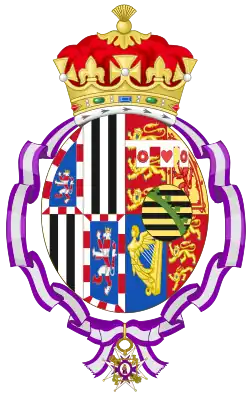 | Princess Beatrice's coat of arms (1858–1917) | Princess Beatrice's coat of arms as a Dame of the Order of Queen Maria Luisa |
