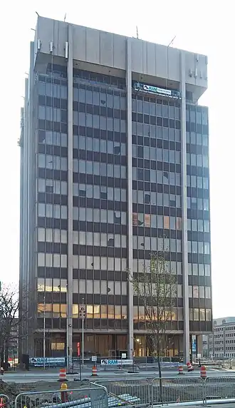The tower went vacant in 2014, when its last tenants moved out. Slated for demolition, it was bought by Detroit-based Roxbury Group in January 2015,[3] and reopened in October 2017 after a $22 million renovation which turned it into a 72-unit residential apartment with ground floor retail.[4][5]