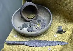 The main feature of the Przeworsk culture are burials. These were mostly cremations, with occasional inhumation. Warrior burials are notable, which often include horse-gear and spurs. Some burials are exceptionally rich, overshadowing the graves of Germanic groups further west, especially after 400 AD.[9] Pottery and metalwork are often rich and show a great variety [10]