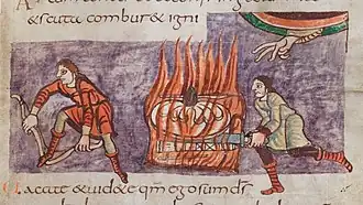 This psalm was traditionally recited or sung at the office of matins on Tuesday[10] after St. Benedict of Nursia established his rule of St. Benedict around 530, mainly in the numerical order of the psalms.[11] Today, Psalm 46 is sung or recited at vespers on Friday of the first week of the liturgical four weekly cycle.