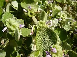 Pseudodictamnus acetabulosus, the Greek horehound, is a species of flowering plant in the family Lamiaceae, native to south-eastern Greece, Crete, and western Turkey.[1] It is a compact, evergreen subshrub growing to 0.5 metres (20 in). Upright woolly grey shoots turn to rounded grey-green leaves, bearing whorls of small pink flowers with funnel-shaped green calyces in late summer and autumn. It is tolerant of poor soil and drought, and often used in cultivation as groundcover.[2][3]