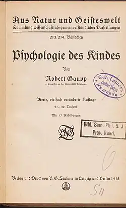 - ^ Gaupp, Robert (1909). Psychologie des Kindes (Zweite Auflage). B.G. Teubner Leipzig Berlin. pp. Preface.