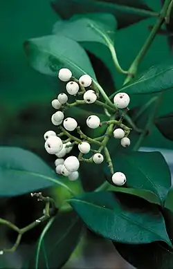 Psychotria coelospermum is a vine in the coffee family Rubiaceae found only in the Northern Territory and Queensland, Australia. It is a root climber with a slender stem and leaves arranged in opposite pairs, each measuring up to 14 cm (5.5 in) long by 7 cm (2.8 in) wide. Flowers are produced in panicles from October to December, followed by white fruits about 15 mm (0.6 in) diameter from February to June. It grows in swamps and very wet areas in rainforest. It was first described by the Queensland government botanist Frederick Manson Bailey in 1904.[4][5]