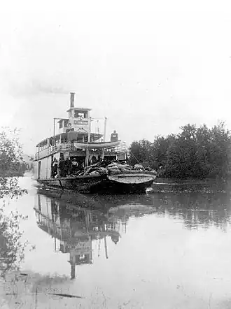 Ptarmigan was built at Golden, BC and was the last vessel built for the Upper Columbia Navig. & Tramway Co., of which Capt. Frank P. Armstrong was the principal owner and manager. Ptarmigan's engines were over 60 years old, and had been originally built for a ferry crossing the St. Lawrence River. The engines had been previously installed in two other sternwheelers on the upper Columbia River, specifically the first Duchess, and the second Duchess.[2] The blunt-ended bow of Ptarmigan allowed the vessel to be more capable of pushing barges, which increased the vessel's utility and effective cargo capacity.[1][3]
