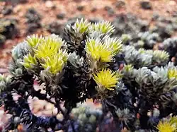 Ptilotus helichrysoides is a species of flowering plant in the family Amaranthaceae and is endemic to Western Australia. It is an erect, compact shrub with stem leaves arranged alternately and yellow flowers arranged singly or in oval to spherical spikes.