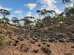 This species of Ptilotus on rocky hillslopes and outcrops in the Avon Wheatbelt, Coolgardie, Geraldton Sandplains, Great Victoria Desert Murchison and Yalgoo bioregions of Western Australia.[2]