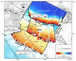 - ^ McFarling, Usha Lee (April 4, 2003). "Major Threat Seen in L.A. Quake Fault". Los Angeles Times. Retrieved October 13, 2012.