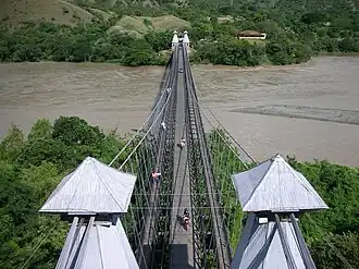 The Puente de Occidente (Bridge of the West), so named because it is located in western Antioquia, Colombia, is a suspension bridge that connects the municipalities of Olaya and Santa Fe de Antioquia, east and west of the Cauca River, respectively. At the time it was considered to be the third largest suspension bridge worldwide.[1]