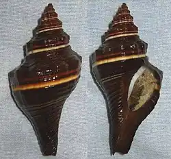 Pugilina tupiniquim is a species of sea snails, a marine gastropod mollusk in the family Melongenidae, the crown conches and their allies. This species and its Eastern Atlantic congener, Pugilina morio, were once thought to be a single, amphiatlantic entity. They have, however, been recognized as distinct taxa based on anatomical and environmental differences.[1]