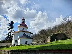 Next to the chapel is a ruin of the Rotunda of Saint Pantaleon. It was a Romanesque building, built probably in the second half of the 11th century. It is significant historical evidence of the original centre of Slavic liturgy.[8]