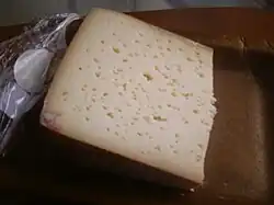 • Semi-hard, light straw-colored paste with scattered small to medium-sized eyes