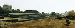 Between 1991 and 1998, with the agreement of Thor Heyerdahl, multiple excavations of the site by archaeologists of the University of La Laguna (Departamento de Prehistoria, Antropología e Historia Antigua) took place. In 1996 the results of the 1991 excavation were presented at a colloquium (published in 1998), providing evidence for the dating of the pyramids.[8] According to the preceding geophysical Georadar-Survey eight locations adjacent to the pyramids, each with an area of 25 m², were investigated in layers down to the solid lava-floor. In doing so it was possible to establish three specific sediment layers. Starting from the top these were:
