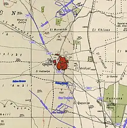 During Napoleon's campaign in 1799, the French forces defeated the Ottoman troops who had been sent to Qaqun to stop their advance towards Acre.[27] Pierre Jacotin named the village Qaqoun on his map from the same campaign.[28]