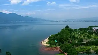 Qiong Lake (Chinese: 邛海; pinyin: Qiónghǎi), sometimes tautologically referred to as Qionghai Lake, is a freshwater lake in Liangshan Prefecture, Sichuan, and is the second largest lake in Sichuan. The lake is located in a depression on the east side of the Anning River valley, in a mountainous region of the province between the Hengduan Mountains and the Yungui Plateau.[1] Xichang, the capital of Liangshan Prefecture, is located on the northwest shores of the lake and the entire of the lake is within Xichang County.[2]