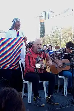 Félix Díaz beside the Argentinian musician Gustavo Cordera in a concert that offer this last for Qopiwini on 1 September 2015.
