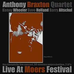 Quartet: Live at Moers Festival is a live album by saxophonist/composer/improviser Anthony Braxton's Quartet recorded in 1974 at the Third International New Jazz Festival in Moers and originally released on the German Ring label in 1976 and the Moers Music label in 1977 as a double LP.[1][2][3]