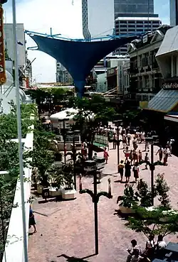 The Queen Street Mall is a pedestrian mall located on Queen Street in Brisbane, Queensland, Australia.[1] The mall extends approximately 500 metres (1,600 ft) from George Street to Edward Street, and has more than 700 retailers over 40,000 square metres (430,000 sq ft) of retail space, which includes six major shopping centres. It was intended to bring more people into the central business district.