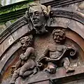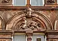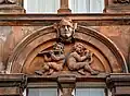 The carvings on the facade of the building are an example of the high quality of local sandstone carving, in particular that of prolific local sculptor William Flint.