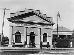 The Queensland National Bank was the first and most successful of Queensland's three indigenous 19th century banks. It was established in March 1872 by a group of prominent Queensland squatters, politicians, lawyers, and businessmen who wished to secure development capital free from overseas or intercolonial control. Its first office was established in Queen Street, Brisbane in that year and the bank attracted widespread Queensland patronage. In 1879 it secured the whole of the Queensland Government's banking business. By 1880 it held 40% of deposits in the colony and dominated the Queensland economy. This was not, however, the first bank established in Childers, the Bank of North Queensland and the Commercial Banking Company of Sydney both being present in the 1890s and erecting premises in the newly emerging sugar town in 1900.[1]