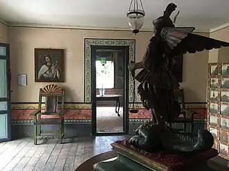 In 1825, following the death of Zaraza, the Quinta de Anauco was leased to Francisco Rodríguez del Toro e Ibarra, the fourth Marqués del Toro, who had been a division general of the republican army during the Venezuelan war of independence.[2] Simón Bolívar stayed with the Marqués at the Quinta in July 1827, and advised him to buy it.[1] Rodríguez del Toro bought the Quinta in December 1827 for 3,250 pesos; at that point it acquired the name "Quinta de Anauco".[1] He had the walls painted with murals and lived there until his death in 1851.[2] In his will Rodríguez del Toro left the lower rooms and half the garden to his brother and sister, and the upper rooms and the remaining half of the garden to his nieces.[3] The Quinta changed hands several times before being bought by Domingo Eraso for 5,000 pesos in 1860.[1]