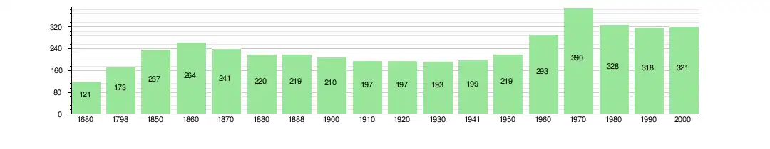 As of 2000, there were 126 people who were single and never married in the municipality. There were 156 married individuals, 29 widows or widowers and 10 individuals who are divorced.[9]