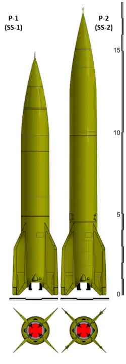 The West obtained its first photographs of the R-2 (which they designated SS-2 "Sibling") in December 1959 when aerial surveillance returned images from rockets deployed at Kapustin Yar. These confirmed the dimensions of the rocket and revealed much information about the organization of the RVGK brigades.[9]